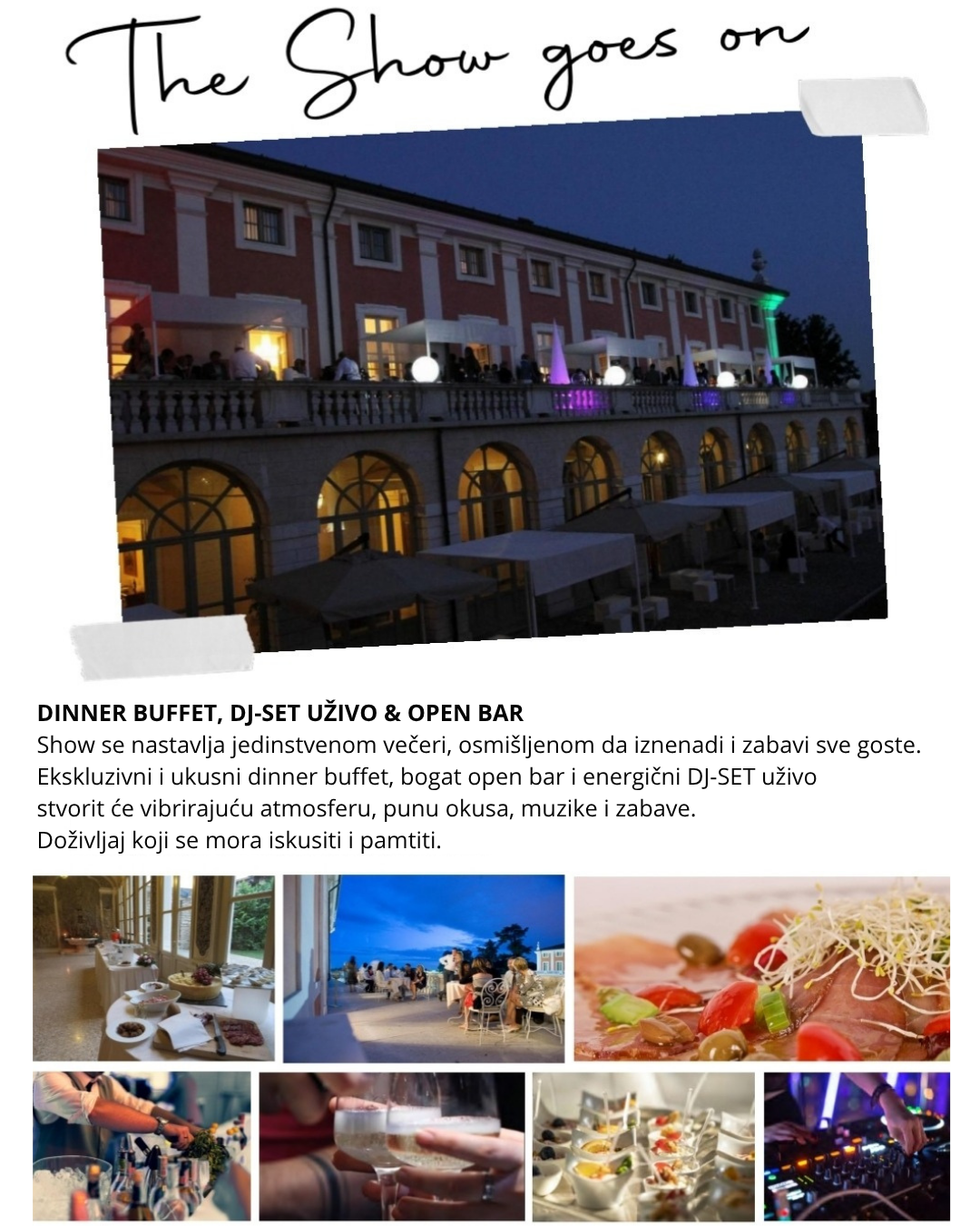 - Dinner buffet, after party DJ-set uživo i open bar-u