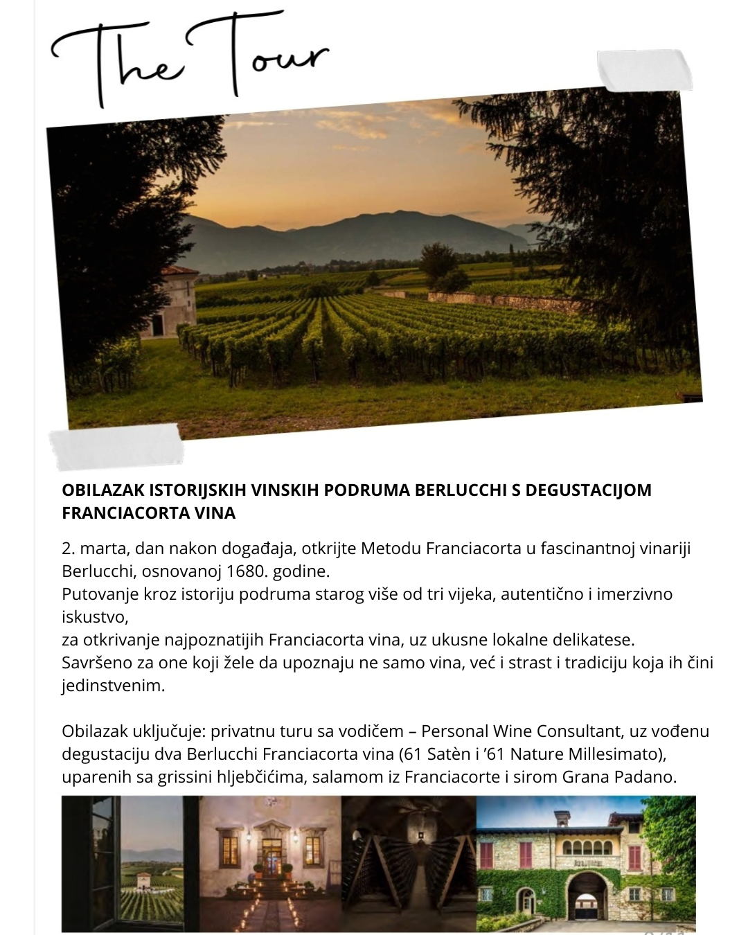 - Franciacorta doživljaju: privatni obilazak i degustacija vina Berlucchi
